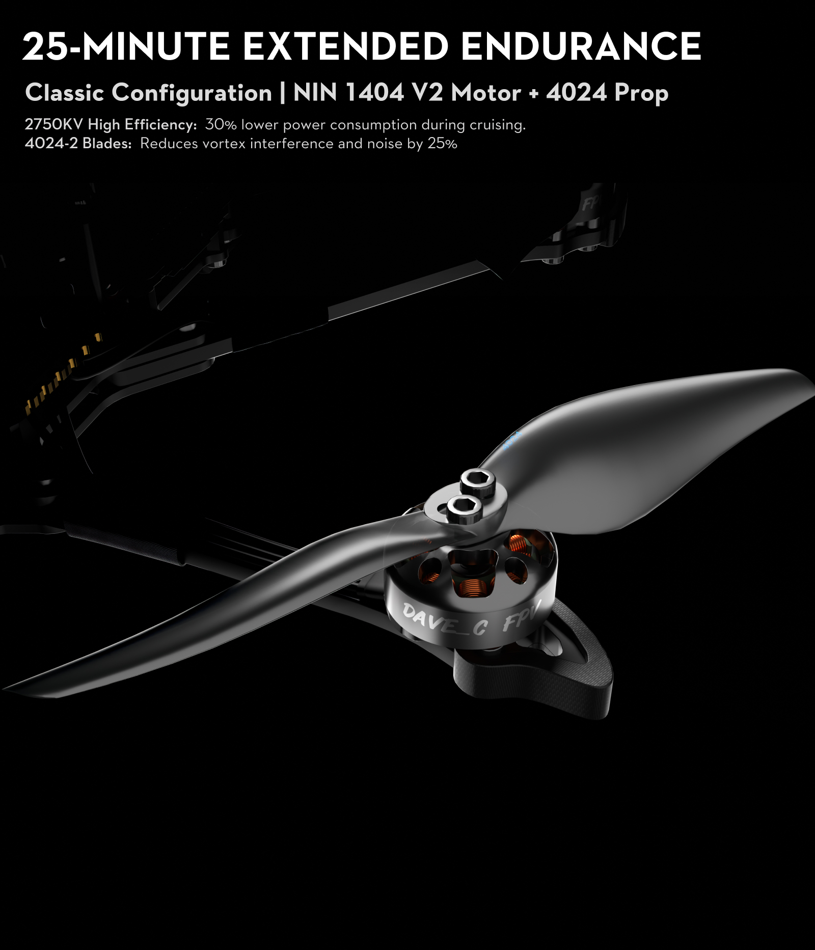 - Ultra-effiziente 1404 2750 KV Motoren + 4024 Props