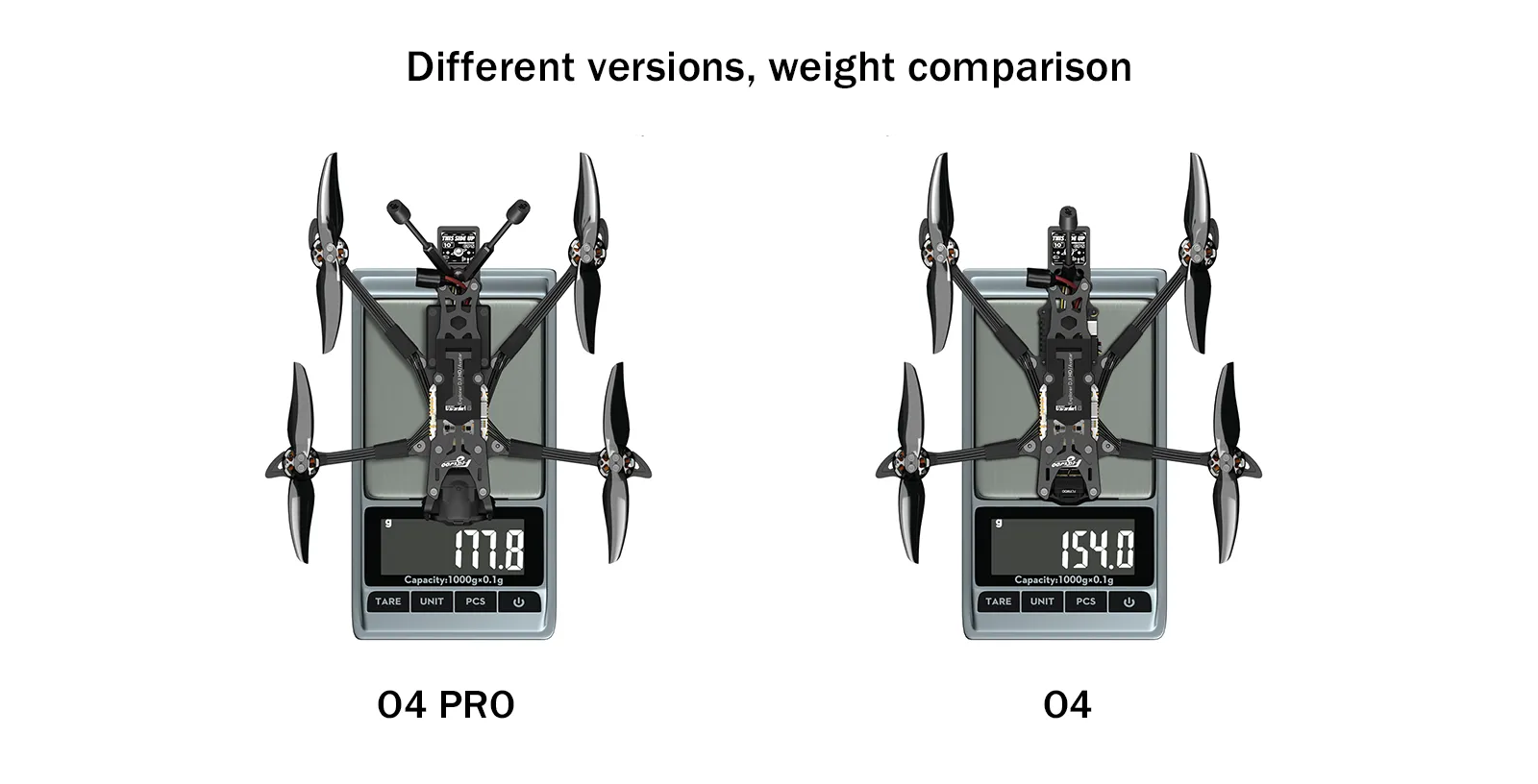- Gewicht: 177,8 g (ohne Akku) → bleibt mit den meisten 4S-Packs unter 250 g